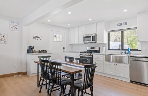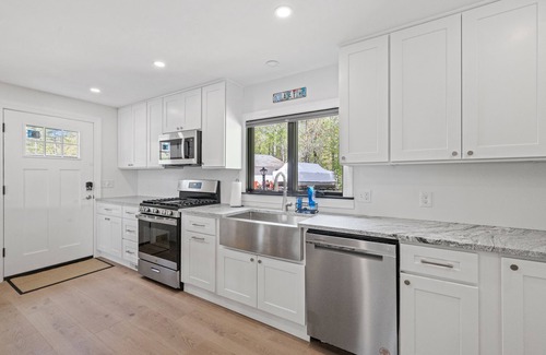 Whether you're seeking a peaceful escape or an adventure-filled lake getaway, this home has it all! Enjoy 90+ feet of private beach—perfect for swimming, boating, fishing, or relaxing. The spacious backyard with fire pit and grill is perfect for cozy evening gatherings with friends and family. Just a short drive to hiking, skiing, North Conway shops, and Wolfeboro center. Steps from snowmobile trails. Inside, unwind in a newly renovated, modern lakefront home.