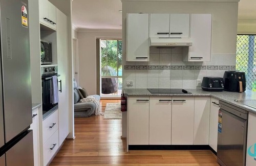 The heartbeat of this holiday haven is its contemporary kitchen, boasting a suite of brand new appliances - from the oven to the cooktop and dishwasher. Whether you're a culinary virtuoso or simply seeking a stress-free way to create delicious meals, this kitchen stands ready to cater to your desires.