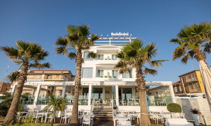 Set on the seaside promenade in Rimini’s Torre Pedrera area, Baldinini Hotel offers an equipped terrace, an à la carte restaurant and free bikes. It is a 10-minute drive from Rimini’s town center. Featuring a balcony and contemporary furnishings, the rooms come with air conditioning, free Wi-Fi and a flat-screen TV. The bathroom has free toiletries and a hairdryer. Your sweet and savory breakfast is served in the dining room, and in fine weather on the terrace. The restaurant, outdoors in summer, offers Mediterranean, seafood and vegetarian cuisine. The nearest train stop is 1148 feet away, while Rimini Train Station is a 10-minute drive from the property. Aquafan Amusement Park is around a 20-minute drive away. On-site free parking is available.