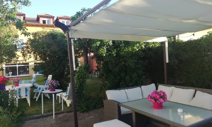 The apartment has a private garden of 500 m2 that only you will enjoy, with table for lunch and dinner outdoors, sunbeds for sunbathing and chill out area with very comfortable armchairs, large ping pong table and dartboard. There is also a shared lounge area. Free space to leave the bicycles of those who are doing the Jacobean route.