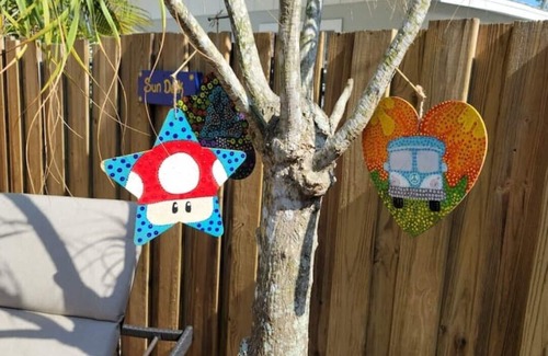 Enjoy our spacious fenced-in backyard (shared with Unit B) – our blissful and beautiful bamboo oasis. Take a look around – you’ll find some art created by your hosts. We invite our guests to add art of their own. Also, you’ll find two sun loungers, a small pond with a waterfall, two benches, two benches, and two hammocks. We have many different seating areas, top of the line propane grill, small refrigerator, and a tiki toss game. Listen to the birds and the wind blowing through the bamboo trees making music. :) At night we have lovely lighting throughout. Life can be chaotic at times, so our hope is that we can offer you a pleasant place, where you can find some joy and relaxation.