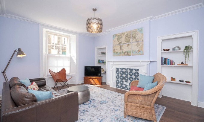 Banrigh House – where historic elegance meets modern comfort in the heart of Stirling. This 19th-century gem on Queen Street offers high ceilings, period charm, and family-friendly spaces. Enjoy views of the Wallace Monument, a king suite, playful bunk room, and a bathroom with freestanding tub. Relax in the cosy lounge, cook in the fully equipped kitchen, and unwind in the private garden. A rare chance to stay in history, with comfort and warmth at its heart.