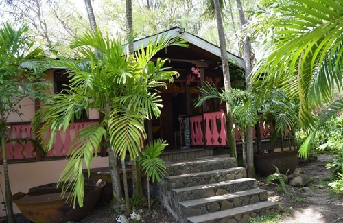 Banyan House is the largest of our vacation rentals and can accommodate up to six people. The Asian-inspired design and natural wood walls and hardwood floors create a warm and cozy feel. The 2 bedrooms and bathrooms are adjoining, and there are four separate beds plus a baby cot, making this cottage particularly suitable for groups or larger families with young children. There is also a living room with two twin beds, a veranda with dining table and sofa, an indoor shower and a spacious bathtub, and a beautiful outdoor shower built with natural stone. The kitchen is equipped with basic cooking utensils, gas stove, oven and full-size fridge.