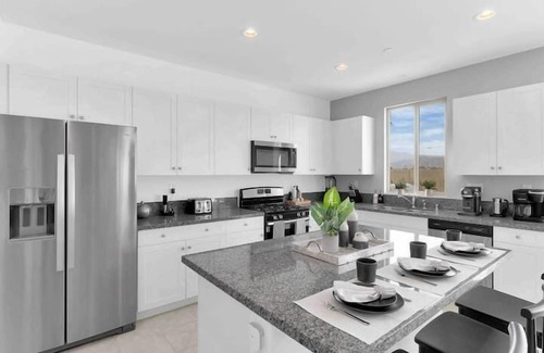 Welcome to our Coachella Mountain View Estate where all of your vacation wants and needs are met. You’ll feel warm light pour through the open layout as you make your way through this expansive, recently build home.