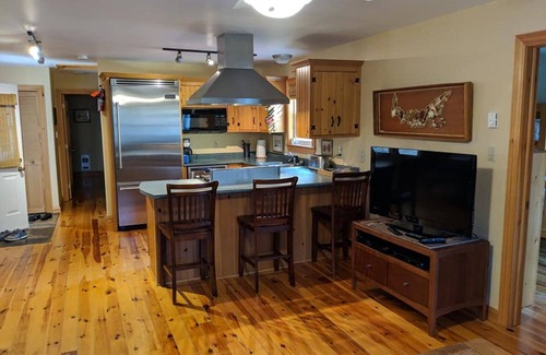 The house has four bedrooms and two full bathrooms situated all on one level. Three bedrooms are located down one wing of the house including two king bedrooms and one queen bedroom. A fourth bedroom is located in the main area of the house and has a single-over-double bunk bed. There is also a pull-out sofa in the living room should extra sleeping space be required.