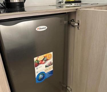 BathroomToilet paper, Toilet, Private bathroom, Shower, TowelsMedia & TechnologyFlat-screen TV, Streaming service (like Netflix), TVGeneralTrash cans, Key access, Iron, Tile/Marble floor, Air conditioningKitchenCoffee machine, Kitchenware, Dining table, Microwave, Wine glasses, Kitchen, Refrigerator, Kitchenette, Electric kettle, StovetopViewView, City viewLiving AreaDining areaBedroomWardrobe or closet, LinensAccessibilityUpper floors accessible by elevatorBuilding CharacteristicsPrivate apartment in buildingFood & DrinkBottle of waterRoom AmenitiesSocket near the bedPhysical distancingSingle-room AC for guest accommodationCleanliness & disinfectionHand sanitizer |