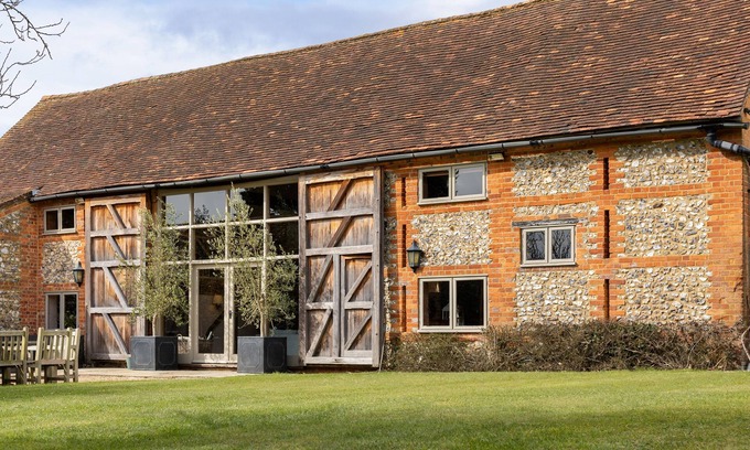 Authentic barn conversion in picturesque Stonor Valley, an area of outstanding natural beauty. As you enter the barn through tall glass doors, you come into an open-plan sitting room, with double height ceiling and a comfortable seating area.