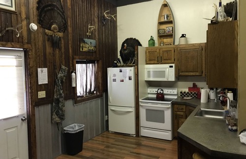 Two bedroom. One with queen size bed and second room queen size bunk beds. Also, a couch in living room. Open floor plan for living room and kitchen. Kitchen has table for four, refrigerator, stove, microwave and dishwasher. Also has all utensils and plates, spices, dish detergent, trash bags. Living room has a couch, oversized chair smart TV and wifi, wood burner and built in electric heaters for heat, and gun cabinet for the hunters use. Full bathroom with towels, soap and shampoo's and laundry room with washer and dryer. Outside plenty of parking, outside fire pit, charcoal grill and picnic tables. Back porch fully furnished for quiet evenings. A16x36 side patio for outside enjoyment complete with corn hole boards and other games. Located on a gravel road, beautiful country scenery all around. Perfect for the hunter or the couple just wanting a quiet get-away. Located 10 minutes from Dresden, 15 minutes from Coshocton, 30 minutes from Zanesville, Newark and Mount Vernon.