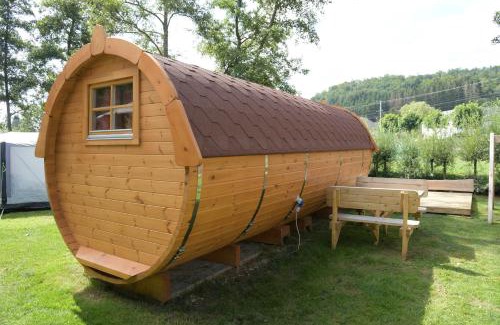 Providing a garden, Barrels am Clerve offers accommodations in Enscherange. Both free Wifi and parking on-site are available at the campground free of charge. On clear days, guests can head outside to enjoy the campground's outdoor fireplace or simply kick back and relax. Featuring mountain and city views, this campground provides 1 bedroom and opens to a terrace. Towels and bed linen are provided in the campground. The accommodation is non-smoking. There is a snack bar, and a mini-market is also available. Guests at Barrels am Clerve can enjoy table tennis on-site, or hiking in the surrounding area. Vianden Chairlift is 17 miles from the accommodation, while Victor Hugo Museum is 17 miles away. Luxembourg Airport is 40 miles from the property.
