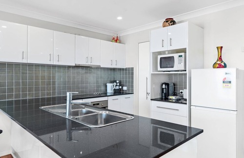 Step out the front door to the local nature reserve. The house boasts fantastic water views of the ocean across the road, which leads to sand and water, or launch your boat at the nearby ramp. A five-minute drive takes you to the ferry terminal, shops, cafes, and the Active Hub in Griffith Park. Enjoy the ocean, beach, surf, fishing, ferry, bus, cafes, shops, bike path, and boat ramp all close by. The quiet street opposite the Oceanfront Reserve is only 100m from the boat ramp. Enjoy ocean views from the balcony. Newcastle Airport is a 15-minute drive, the CBD is a 20-minute drive or a 5-minute ferry ride to Newcastle CBD and light rail. Newcastle University and Energy Australia Stadium are both within 15km.