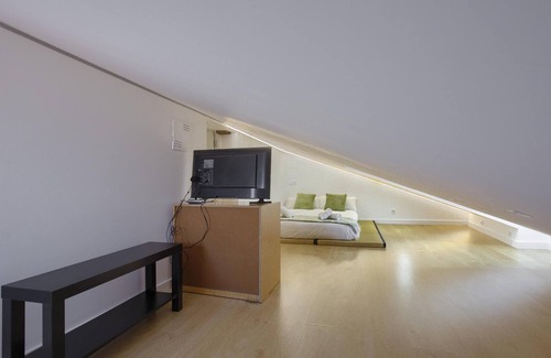 This charming attic-style apartment is ideal for a stay in the city. Located next to Plaza Santa Ana and Antón Martín, it offers immediate access to supermarkets, traditional and modern bars, popular restaurants, shopping centers, gyms, and much more to make the most of your time in Madrid.