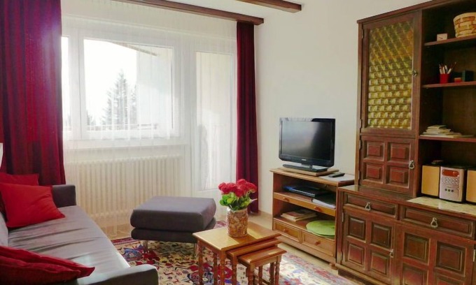 Apartment house "Barzettes-Vacances A/B". Above Montana, in the district of Les Violettes, 1.5 km from the centre of Montana, 2.2 km from the lake, 150 m from the skiing area. In the house: lift, storage room for skis, central heating system, washing machine (extra), drying room. Parking (limited number of spaces) at the house, public car park at 20 m, extra. Grocery 1.5 km, supermarket 1.6 km, restaurant 1.5 km, bakery 250 m, bus stop "télé Violettes" 100 m, railway station "Funiculaire Montana Gare" 1.2 km, bathing lake "Moubra" 2.5 km, lake Grenon 2.2 km. Golf course (18 hole) 3.5 km, skisport facilities, slopes, ski rental 150 m, ice rink 1.9 km. Well-known lakes can easily be reached: Etang de la Moubra 2.5 km. Please note: The owner does not accept any youth groups. Ski bus (free of charge). Additional accommodations can be booked.