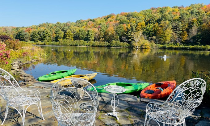 Originally one of the Anheuser Busch Beer estates, our rebuilt barn house sits on fifty-acres including a seven-acre private lake stocked with fish, 4 kayaks for your water fun, trails to hike, a great golf course, and state of the art gym nearby. James Fennimore Cooper, famous author of Last of the Mohicans, the pioneers and many more lived here and his home is a top art Museum 8 min away.