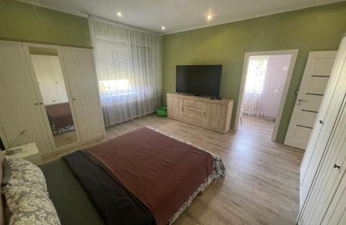 Battonya House in Battonya provides accommodations with a garden, a bar, and barbecue facilities. There's a private entrance at the homestay for the convenience of those who stay. The homestay provides rooms with air conditioning, free private parking, and free Wifi. The homestay provides guests with a terrace, quiet street views, a seating area, satellite flat-screen TV, a fully equipped kitchen with a dishwasher and an oven, and a private bathroom with bath and a hair dryer. A microwave, a toaster, and fridge are also provided, as well as a coffee machine and a kettle. At the homestay, all units are equipped with bed linen and towels. You can play table tennis at Battonya House. With an outdoor fireplace and a picnic area, this homestay offers plenty of opportunities to relax.
