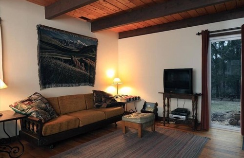 Welcome to Elk Branch Lodge, a sprawling two story country home that easily accommodates family reunions, group gatherings, or romantic getaways for two. The Lodge is not just someone's second home in a busy commercial development. It is a special private place in the country, nestled in the mountains surrounded by thousands of acres of forest. It is also a working horse farm with pastures and wooded trails. There is plenty of room inside for everyone to come together or to spread out into smaller groups. The natural setting will draw you outdoors where the wildlife, mountains and sunsets will work their magic.