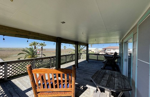 This is a nice 2 bedroom house on the creek with a large private lighted fishing pier at the Caney Creek "Y". Fun and relaxation with excellent fishing! Downstairs bathroom for easy access to all-night fishermen. Less than one minute to the Intracoastal and 5 minutes to East Matagorda Bay by boat. Enjoy seeing unobstructed sunset views over the bay and marine traffic on the Intracoastal from the front deck.