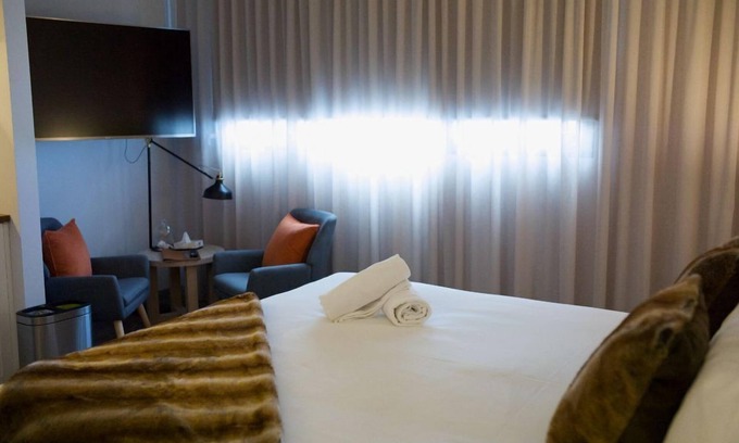 Suite 7 is a first floor room with private en-suite bathroom, Smart TV, bar fridge, Espresso machine, microwave, tea + coffee facilities, 1 x luxury super king size bed, a private en-suite, lounge chairs and free wifi. Our apartments are not located on the water, they are located in the St Helens township.