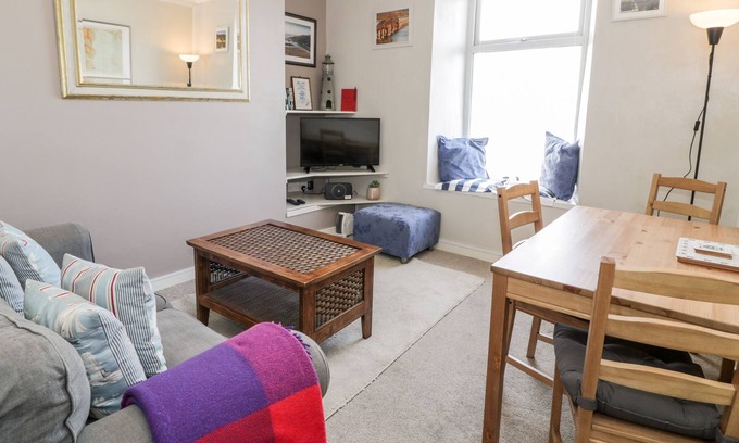 The living areas in the property consist of an open-plan living area with a kitchen equipped with an electric oven, induction hob, kettle, toaster and fridge, a dining table with seating for four and a sitting area with a TV. The bedrooms consist of a double and a single, and there is a bathroom. There is a parking permit provided for a nearby car park and additional parking can be found on the roadside on a first-come, first-served basis. Apologies, but this property doesn't permit pets or smoking. For your local conveniences, you can find a shop and a pub within 0.1 mile. A coastal retreat awaits with a stay at Bay Views.. Note: This property is accessible via foot up a short, VERY steep hill and 18 stone steps and may not be suitable for guests with limited mobility. Note: No children under 10 years old. Please note the property does not have a BBQ