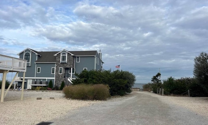 Welcome to Friends Way in Beautiful North Beach. A bayfront property on a private easement with 100 ft wide open water views and deeded ocean access across the street. Only 8 houses to the ocean. The house offers 2 living areas, an extra-large ground-level deck with a fire pit, 7-person Hot Tub, and in-ground pool in a fenced yard..