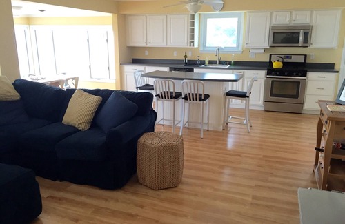 This home is newly renovated with an open floor plan. The kitchen is fully equipped with all new appliances, and everything you will need to enjoy your vacation. Kitchen island seats 4, and dining table seats 8. Large living room with 55" LCD HDTV, as well as sun room with additional seating to enjoy the beautiful views. High speed wifi and internet access. There is a washer and dryer, and central air conditioning. Outdoor shower, propane grill, and outdoor furniture. Private driveway with off street parking.
