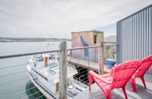 You’ll find yourself literally on the ocean’s edge when you enjoy a stay in this pretty waterfront studio, but what an edge! Your private deck overlooks the stunningly beautiful Yaquina Bay and its busy harbor with an endless parade of fishing boats, sea lions, and seabirds cruising by. To top it off, Ocean’s Edge has a jetted spa tub looking out to the water, so you can soak away your cares as you watch gulls wheeling in the sky. A gas fireplace will keep you cozy in the evenings, and a kitchenette gives you a coffee station, microwave, and fridge for snacks and breakfast.