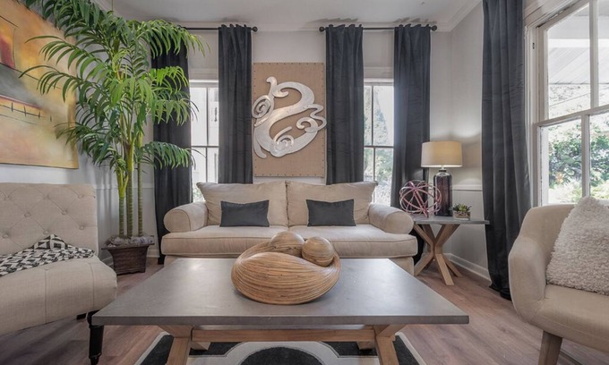 Steps from Bayshore & SOHO. Experience a blend of historic character and modern comfort. This revitalized bungalow, located in one of South Tampa's most desirable neighborhoods, offers a unique escape. It features a cozy sanctuary perfect for Tampa adventures. The front porch is ideal for morning coffee. The expansive ceilings, a gorgeous chandelier, and natural wood tones create a relaxing atmosphere. Scenic strolls along the waterfront are steps away. Book an unforgettable stay today!