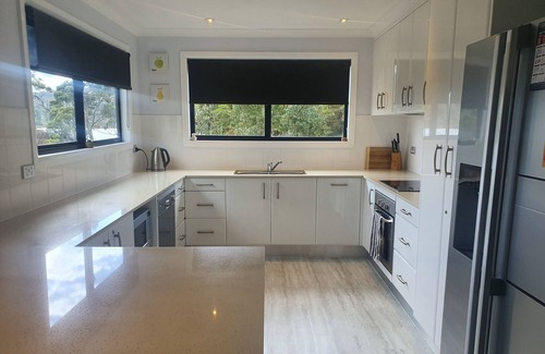 Bayside Retreat is a 4 bedroom, 3 bathroom house including double glazed windows, reverse cycle heat pump & eight additional panel heaters throughout the house.