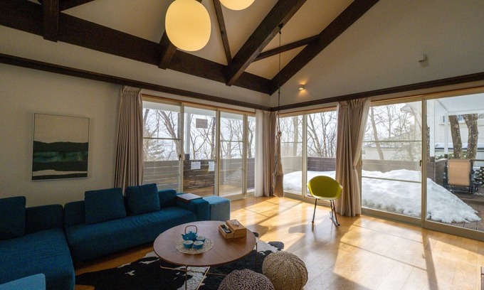 / Montaniya Nasu Villa is located in a quiet villa area surrounded by trees on the Nasu Highlands and features a large atrium a relaxing hammock and a spacious wooden deck ensuring an elegant time for our guests You will be satisfied not only with your family but also with multiple families couples and friends