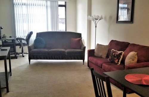 We are located minutes from John Hopkins International Studies, and NYU campuses. 12 min brisk walk to the White House and the Washington Convention Center. You can wake up & grab fresh French cuisine @ PAUL french bakery and cafe. Almost anything that you want to eat from high end to fast food is within a 15 minute walking distance. There is a organic based market with pre-cooked meals such as Fried rice and Salmon to fresh organics. Parking is available for $20 per 24 hr period (meaning if you park at 4pm you will have access until 4pm the following day.) Please be aware that we switch heat only in the Winter to early Spring, and AC only in the Summer and early Fall. We have a clubhouse that can be enjoyed in between your sight seeing or rented for large parties (ask about fee). The balcony is not attached to the unit and is a common space shared by others in the building.