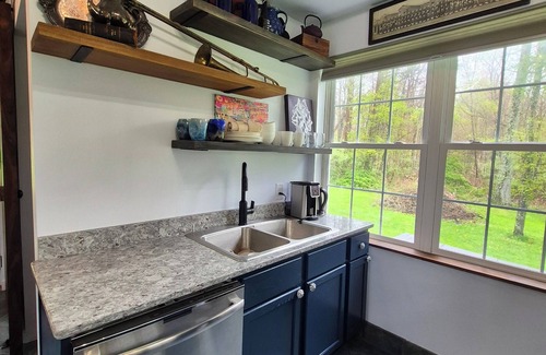 Bloomington is waiting for you at this 1-bedroom villa. The serene atmosphere of this welcoming property located on 4+ acres adjacent to our main house, will make guests feel like welcomed guests. 2 queen beds, one is sleep number queen bed, WiFi, heated bathroom floors, kitchen with cooktop, dishwasher and large toaster oven all dishes, pots and pans provided. Unique spiral staircase, tile floors, and guest amenities for relaxation, including a lovely tea and coffee selection and personal spa items provided. Guests can relax and unwind in this excellent retreat, only 9 miles form IU. Experience what Bloomington has to offer with a stay at our villa.