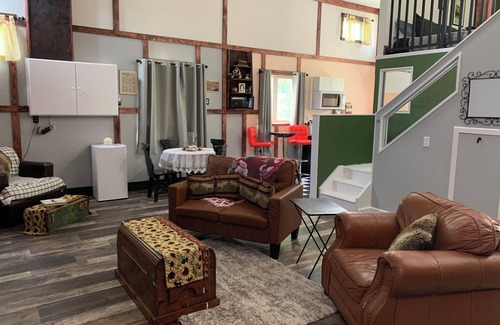 It is fully open concept with loft bedroom. It has a streaming projector with a large movie screen for an amazing home movie theater experience.
