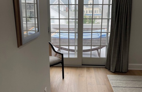 Beach house rental available in Normandy Beach, NJ. (Mantoloking/Lavallette). 2020 custom build, 4th house from beach, 4 bed plus bonus room on 3rd floor with pullouts, sleeping 12+ comfortably. 3.5 bath. Heated inground pool, covered back porch w/ tv & both sitting & dining area, 3rd floor deck w/ gas fire pit, seating & ocean views. Pull down movie projector. Front porch w/ swing bed & rocker overlooking sidewalk street. Steps from beach, 1 block to downtown Normandy shops/restaurants. 3-4 blocks to bayside, yacht club, playgrounds.