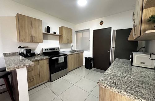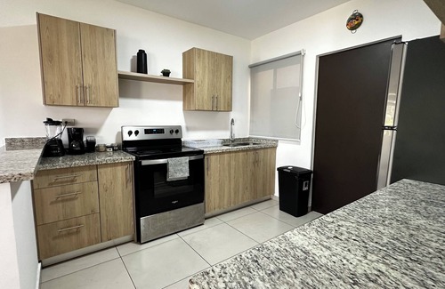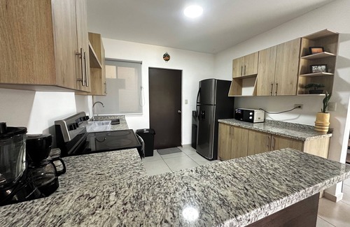 Enjoy the best of both worlds—just 15 minutes from El Salvador’s top beaches and 15 minutes from the city center! This spacious 5-bedroom home is located in an exclusive residential area with premium amenities including a shared pool, large green areas, playground, and sports courts for football and basketball. With 7 beds (including a sofa bed), it comfortably accommodates up to 11 guests. Ideal for family vacations or group getaways in a secure and relaxing environment.
