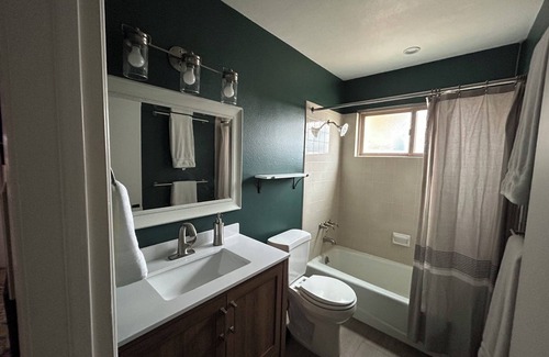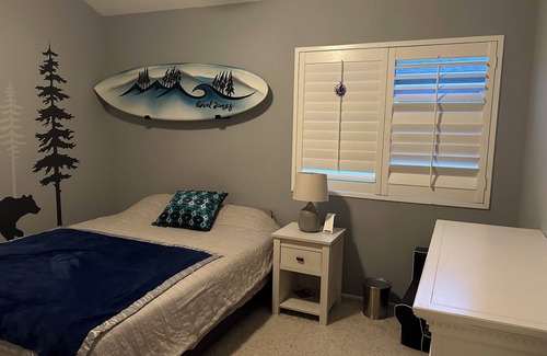 Plenty of space and great for kids. 3 bedrooms, 2.5 bath with a tub, play room, and office with pull out queen couch. There's a wood-burning fireplace in the heart of the living room and a fenced-in front yard with a fire pit and patio. We provide free access to surfboards, bikes, and all the beach gear you could ever need.
