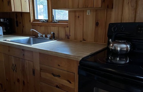 Make some memories at this unique and family and pet friendly place. Open kitchen living room concept. This cabin is one of ten on The Cabins at Chimney Mountain estate located at the base of Chimney Mountain in the Siamese Ponds Wilderness Area. It is wild state forest as far as you can see. The cabins are the only private property on Kings Flow Lake. Trail access right out your door.