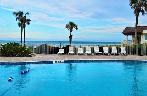 Beach front condo with gorgeous views of the large pool and the Atlantic waves. | Condo in New Smyrna Beach