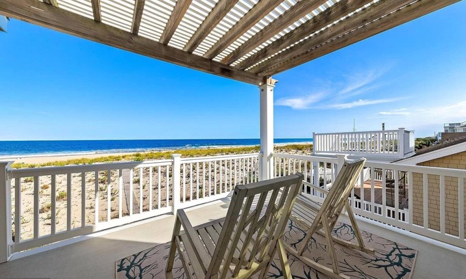 Stunning beach front home with private beach entrance located in Beach Haven. Enjoy ocean views and breath taking sunrises over the ocean.