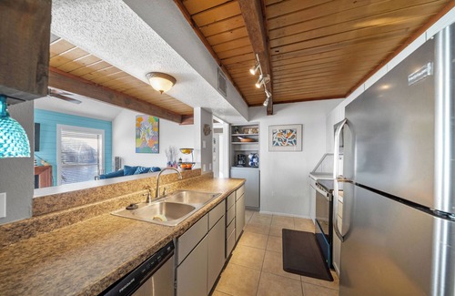We offer an updated three bedrooms, two full bathrooms, comfortable living room with a large smart TV, and a high speed WIFI and a compact computer table for busy people who have to combine work and vacation together. Comfortably accommodates 6-8 people. Its fully stocked with bath towels, dishes, cookware, microwave, coffee maker, ceiling fans, and central AC.
