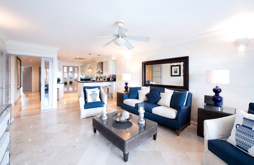 This privately owned sumptuous apartment is built to exacting standards and offers extremely spacious accommodation with a classic character and individual style. Waterside 304 is a third floor apartment accessible by lift or stairs offering far reaching views over the Caribbean sea from the private terrace and living area. This apartment is fully furnished completed with a designer fitted kitchen and 5 star bathrooms equipped with everything you could wish for and more! Waterside is a secure wall gated development and is surrounded by indigenous mature plants around the perimeter of the site for privacy. The apartment is fully air-conditioned has 2 independent bathrooms, broadband, Plasma TV and DVD, Ipod docking station fully equipped kitchen and outstanding views from its private terrace overlooking the 40m private pool. It also offers an underground car park and concierge 24hrs to assist you with any help you may need.