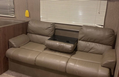 Check out our Campin Mansion space. This Coleman RV has beds for 5 and is just a short walk from the beach in Matagorda on a second-row lot.