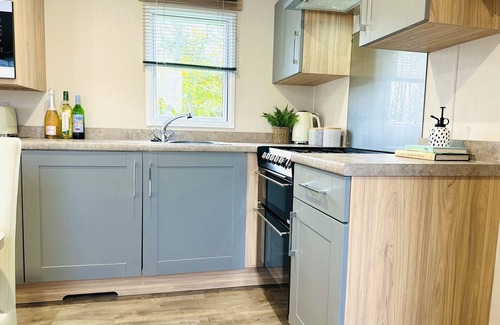 Beach Grove is the epitome of a modern and chic holiday getaway by the coast; it has 3 bedrooms - a master double bed, 2 twin bedrooms, and also a double pull out sofabed in the living room - sleeping up to 8 people. Beach Grove is only a few years old and has been carefully designed to meet our guests high standards and to keep up with modern trends. Elegant soft furnishings have been added to give the lodge an extra touch of comfort. Beach Grove is complete with a spacious living area incorporating an open plan kitchen/ diner, bathroom facilities, gas, water, electric, Wifi, Smart TV, private decking with outdoor seating and on-site parking close by. It is in a very quiet area of the park, tucked away with a beautiful woodland view to the rear.