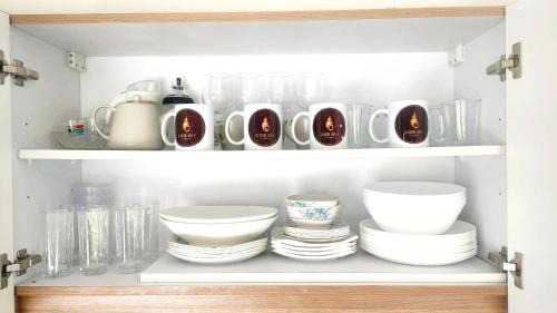 All plates, cutlery, glasses, and other tableware sanitized