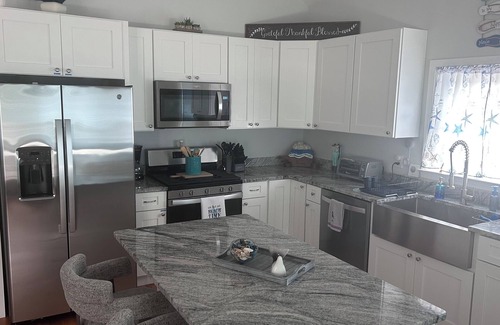 Enjoy a shore vacation at this open floor plan home, one block from the beach. Enjoy a day at the beach (beach passes included) with kayaks and bikes provided. Children can enjoy the splash park on the beach. BBQ with friends and family right in the back yard or eat at one of the local restaurants in walking distance. Seaside Heights is a 12 min drive.