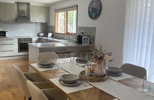 Our home is a double storey child/infant friendly weatherboard beach house only 200m/1 min walk from the shore. With such and amazing view of the beach, free Wifi, coffee pods and everything you need to cook, I'm sure it will not disappoint a group/families get away.