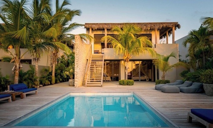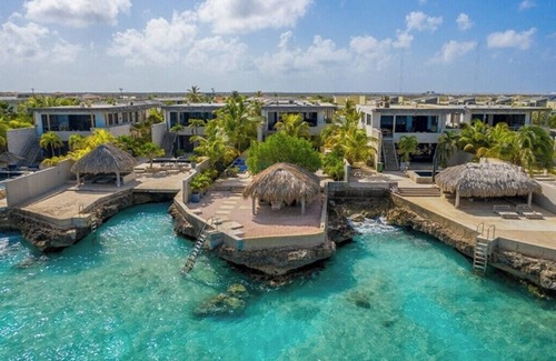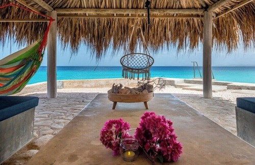 Beach House Piet Boon is a beautiful, spacious oceanfront villa, situated on "Punt Vierkant", on the southwest side of the island. A total of 5 of these oceanfront villas are located on the same street. The villa offers not only a great deal of privacy, but great views over the Caribbean Sea as well. Build perfectly on the wind and with wooden shutters throughout the villa, there is always a nice, cooling breeze through the living area. The stunning design makes the living room flow into the outdoor living space. The villa has 4 bedrooms and 3 bathrooms, so enough space to enjoy the holiday with your family. The garden, with beautiful tropical trees and plants, is spacious and has very comfortable furniture. Cool down in the pool and relax on the loungers set up around it. With a private beach and easy acces to the ocean, you can take a swim in the Caribbean Sea. Enjoy the sunsets from the cosy gazebo. At this side of the island dolphins are frequently spotted, an extra reason to look out over the azure waters!