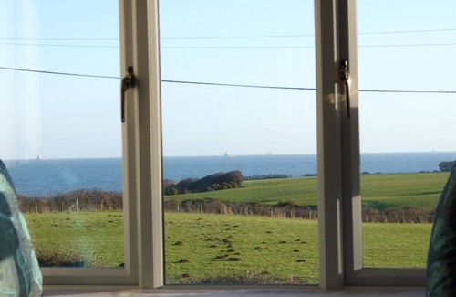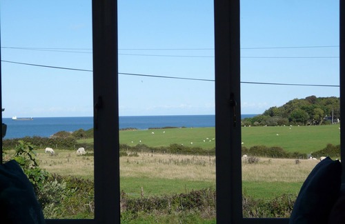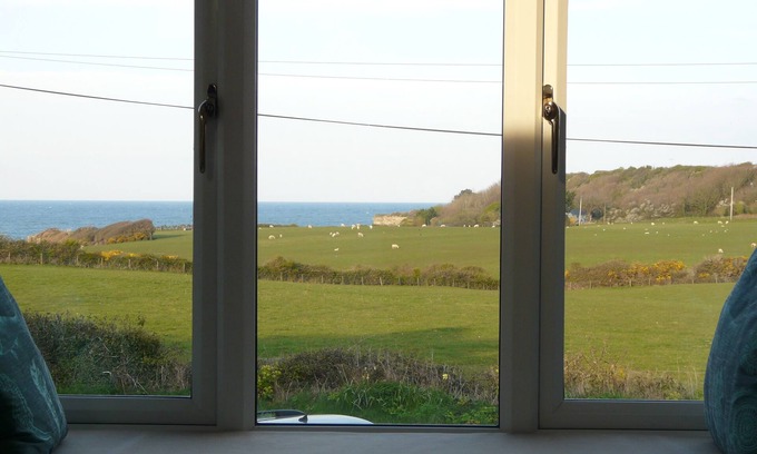A stunning panoramic view of sea, coast and fields at Lligwy from the living, dining and kitchen areas upstairs.