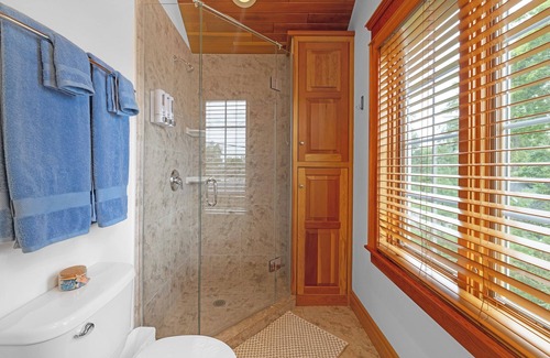 A second full bathroom with large walk-in shower includes a dispenser for the included body wash, shampoo or conditioner. We provide it in both bathrooms.
