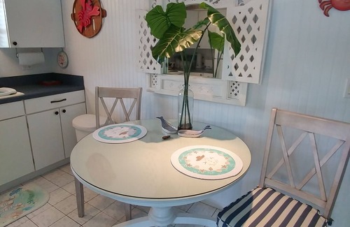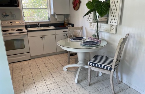 You can walk or bike to beach, restaurants, shopping and more. 2 blocks to beach. Perfect area. Need no CAR. Beautifully maintained two-bedroom vacation rental on gorgeous Anna Maria Island. Secluded beaches, shopping, restaurants, golf, fishing and relaxation. Apartment includes full kitchen, 50' flat screen TV in living room, flat screen TV also in one of the two bedrooms, shower & bathtub combination in the bathroom. A private patio area in side yard for outside dinning and seeing the stars at night. Small grill available. Also has an outside shower to rinse off the sand from the beach. There are beach chairs, and umbrellas for your use. WIFI connection included. The apartment has driveway parking. There is easy access to free trolley transportation around the island. The trolley stop is at the corner of this block. This is also one of the golf cart access streets. You will be in a lovely quiet area ideal for walking and biking and only 2 blocks from beach. Unit is decorated in Florida style, bright colors and fun decor. This unit is not suitable for children or pets, as the decor is of high grade. You will be pleased you found this piece of paradise. Check in is at 4:00 on 1st day of stay, check out is at 10:00 on last day of stay.