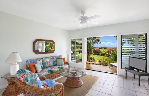 Activities nearby: Seasonal swimming, snorkeling, surfing, scuba diving, horseback riding, botanical garden tours, sightseeing, shopping and tennis. Two championship golf courses, Kiahuna Golf Club and Poipu Bay Resort Course, both designed by Robert Trent Jones, Jr., are within a mile.