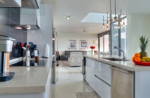 The gourmet kitchen in the main living area will stand up to all serious food lovers and chefs. The nine-foot sliding doors bring the spectacular outside, inside. Our private pool is cool and refreshing; you are sure to enjoy every minute of your vacation. Take in the full ocean view while enjoying a nice bottle of wine.